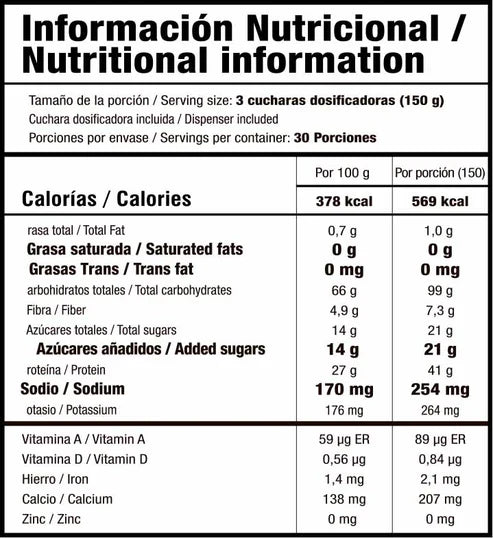 Su fórmula combina maltodextrina, proteína concentrada de suero, aislado de soya y creatina monohidratada, enriquecida con vitaminas y minerales esenciales. Todo en una textura cremosa, de excelente solubilidad y sabor delicioso.