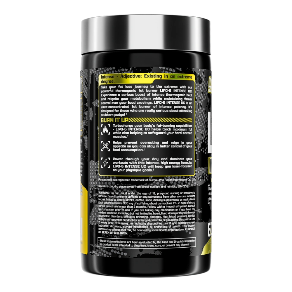 Lipo-6 Black Intense Ultra Concentrate es la evolución definitiva en quemadores de grasa, diseñado para quienes consideran que las fórmulas convencionales ya no son suficientes. Este suplemento lleva la termogénesis al límite, proporcionando una experiencia sensorial intensa y un impulso de energía que notarás en cuestión de minutos. Su fórmula ultra concentrada está creada para activar la pérdida de peso de forma agresiva mientras mantiene el enfoque mental al máximo nivel.